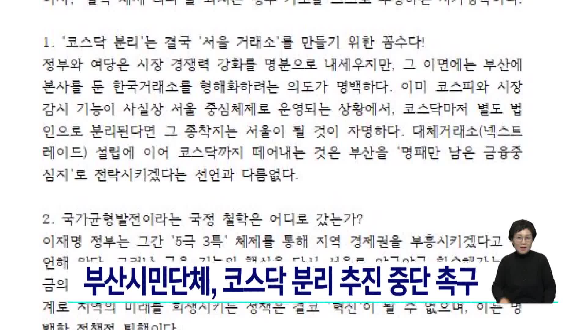 "코스닥 분리 논의가 현실화 될 경우, 금융중심지를 표방해 온 부산의 역할은 더 위축될 수 있다는 우려가 커지고 있습니다."