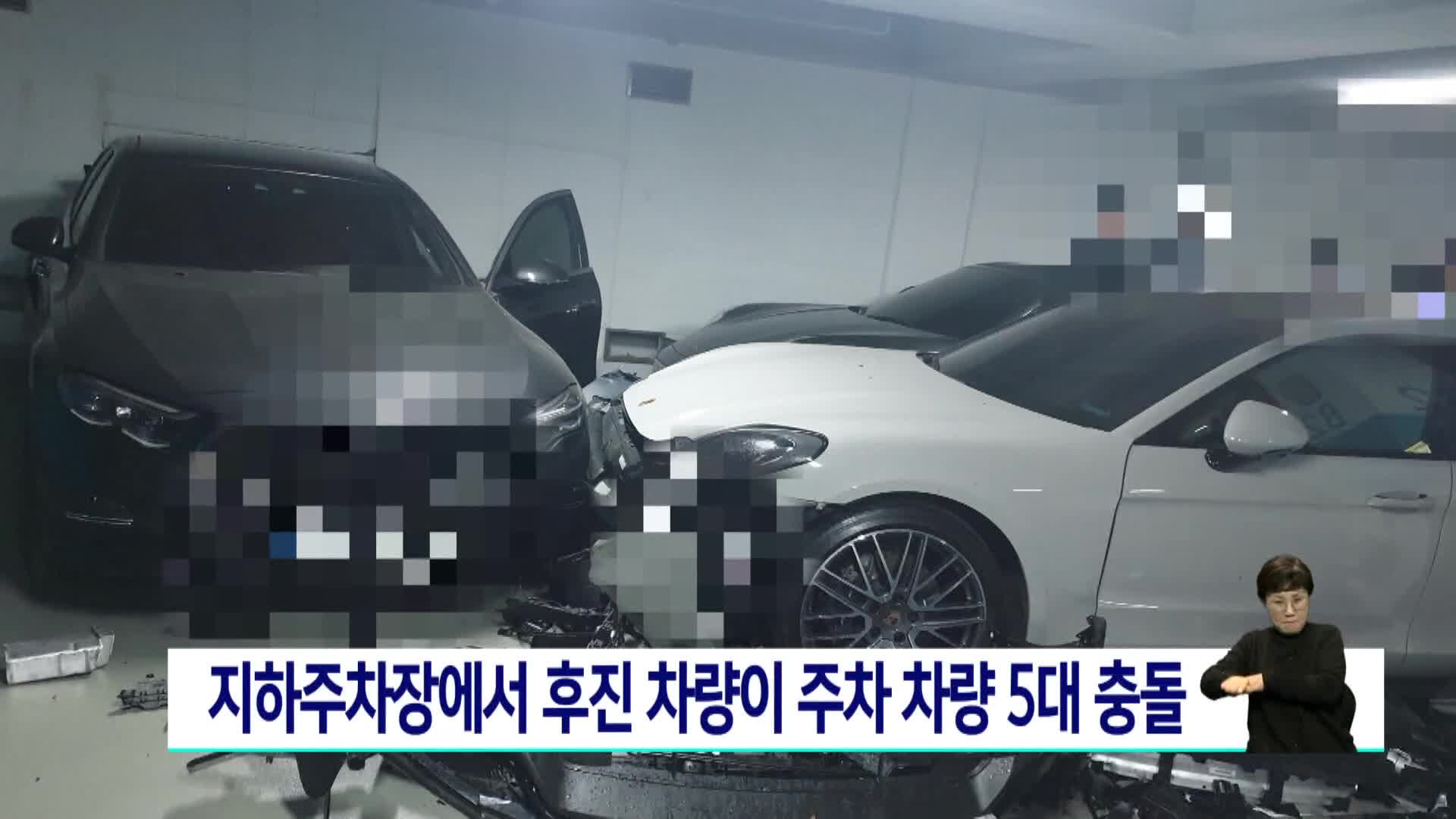 지하주차장서 후진 차량이 주차차량 5대 충돌