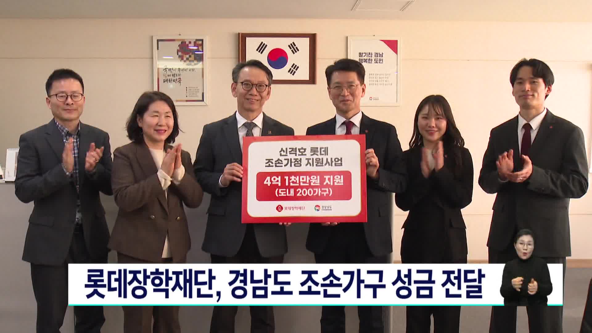 롯데장학재단, 경남도 조손가구 성금 전달