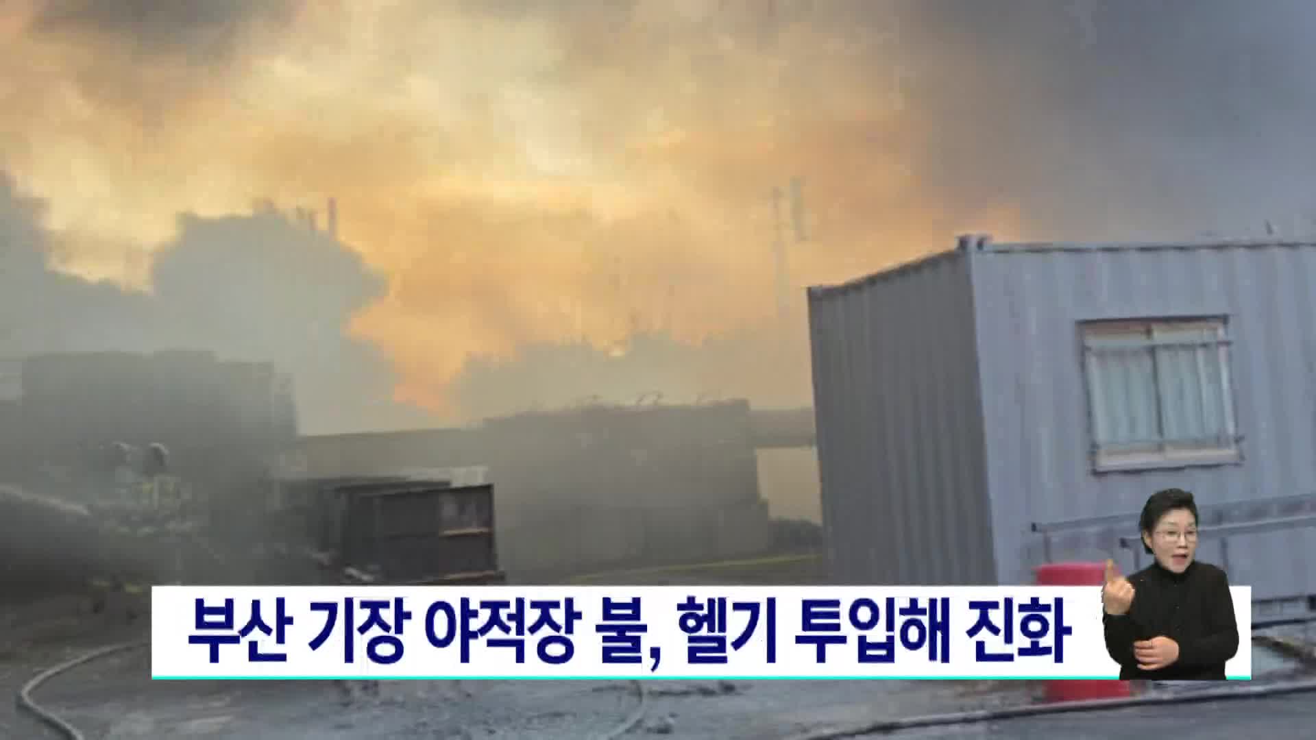 부산 기장 야적장 불, 헬기 투입해 진화