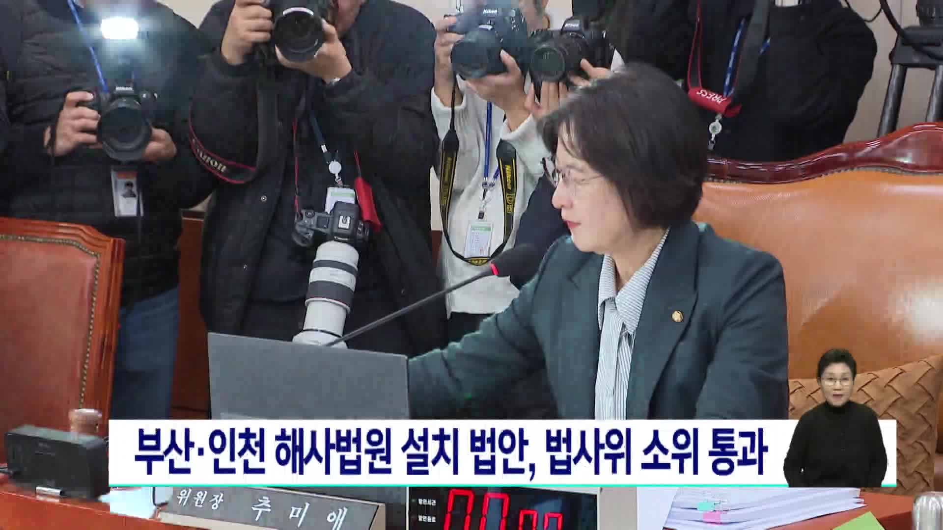 부산*인천 해사법원 설립 법안 법사위 소위 통과